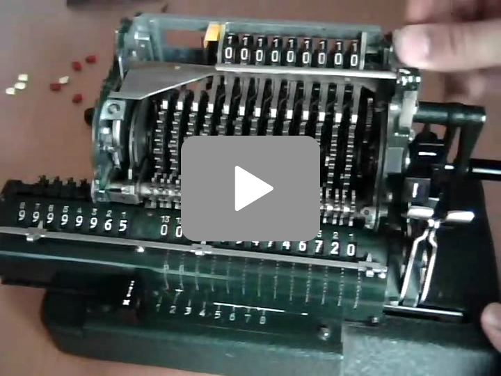 - Páčky vstupního registru se při výpočtu nepohybují. Proto mohou být velké a být opatřeny pohodlnými úchopy. To je obrovské vylepšení oproti Odhnerovým kalkulátorům s titěrnými posuvníky pro nastavování čísel do vstupního registru.