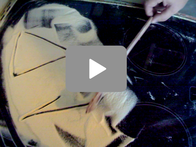 of mass by an experiment with cooker, wooden spoon and flour, as shown